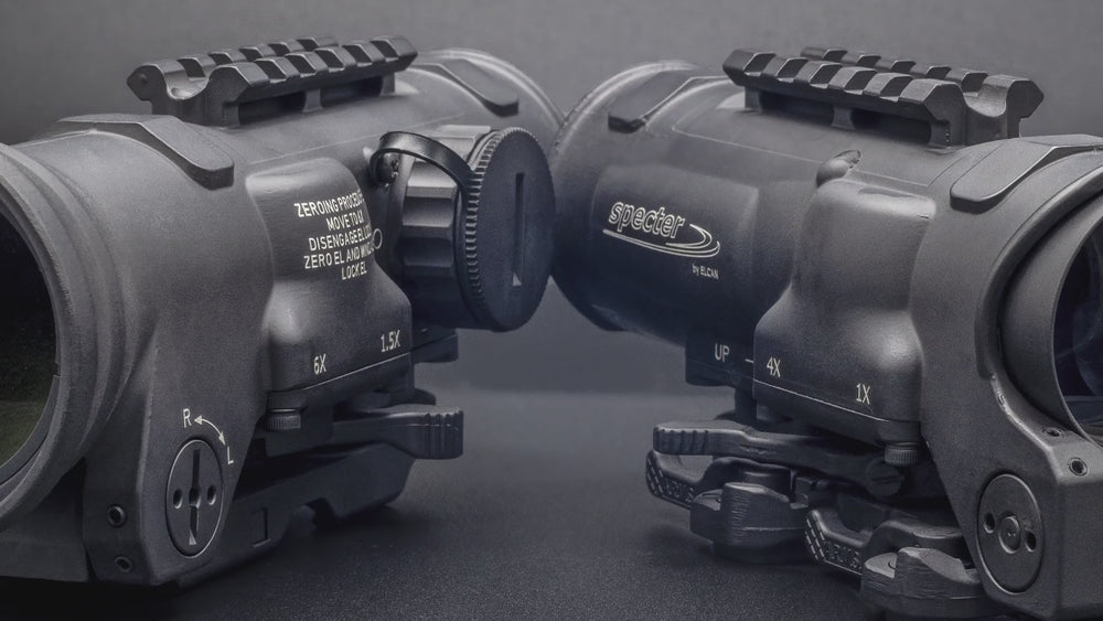 The ELCAN SpecterDR is the most popular scope in the ELCAN lineup. It offers dual-role capabilities, making it ideal for both close-quarter battle (CQB) and long-range shooting. The SpecterDR is available in multiple magnification levels, including the SpecterDR 1-4x and SpecterDR 1.5-6x, with illumination. The illumination system offers seven brightness settings, ensuring clear visibility in any lighting condition.